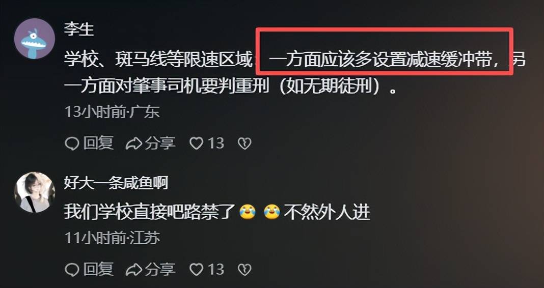 有网友对此事情发声,网友认为:再多的规定,也不如设置减速带管用,你要真的设置30米一个减速带,就不信他们还能把车开到80码,颠散架了他的车。