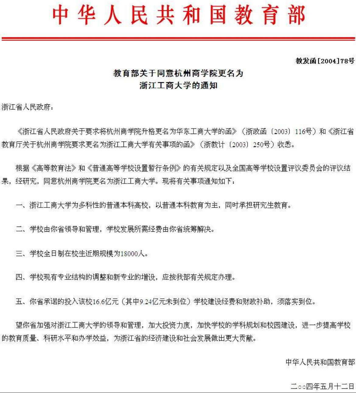 但是很遗憾,学校最终没能拿下,教育部批准给它的校名是浙江工商大学。
