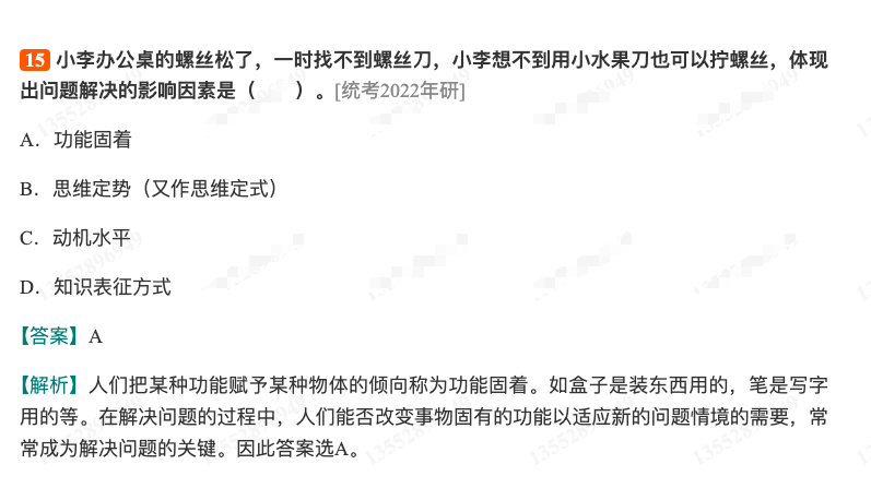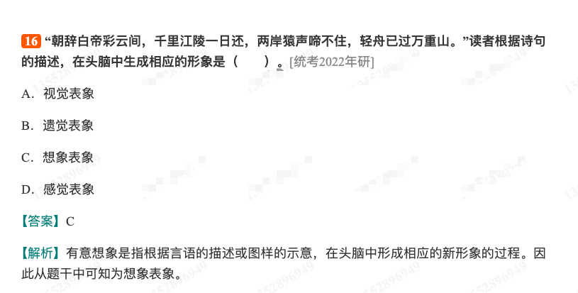 答:(1)表象是指人在头脑中出现的关于事物的形象或者像图画一样的心理表征。按照信息加工的特点,表象是指对当前不存在的物体或事件的一种知识表征,这种表征具有鲜明的形象性,表象为概念形成提供了感性基础,能够促进问题的解决。