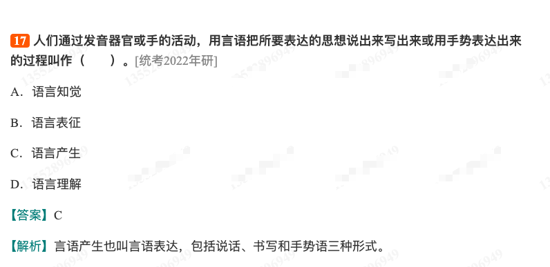 ③理解能产生知觉期待和预测。例如,熟悉英语词汇知识的人,在读到字母“WOR...”后,会预期出现D,K,M,N等字母,因为他们知道,只有这些字母才能与“WOR”组成一个英文单词。在这里,人们已有的知识结构在当前的感知中起着重要的作用。当前环境激活的知识结构不同,产生的知觉期待也不一样。