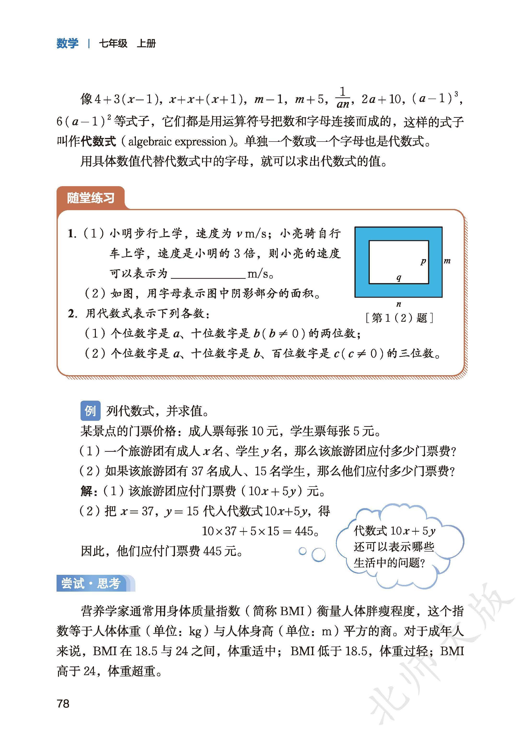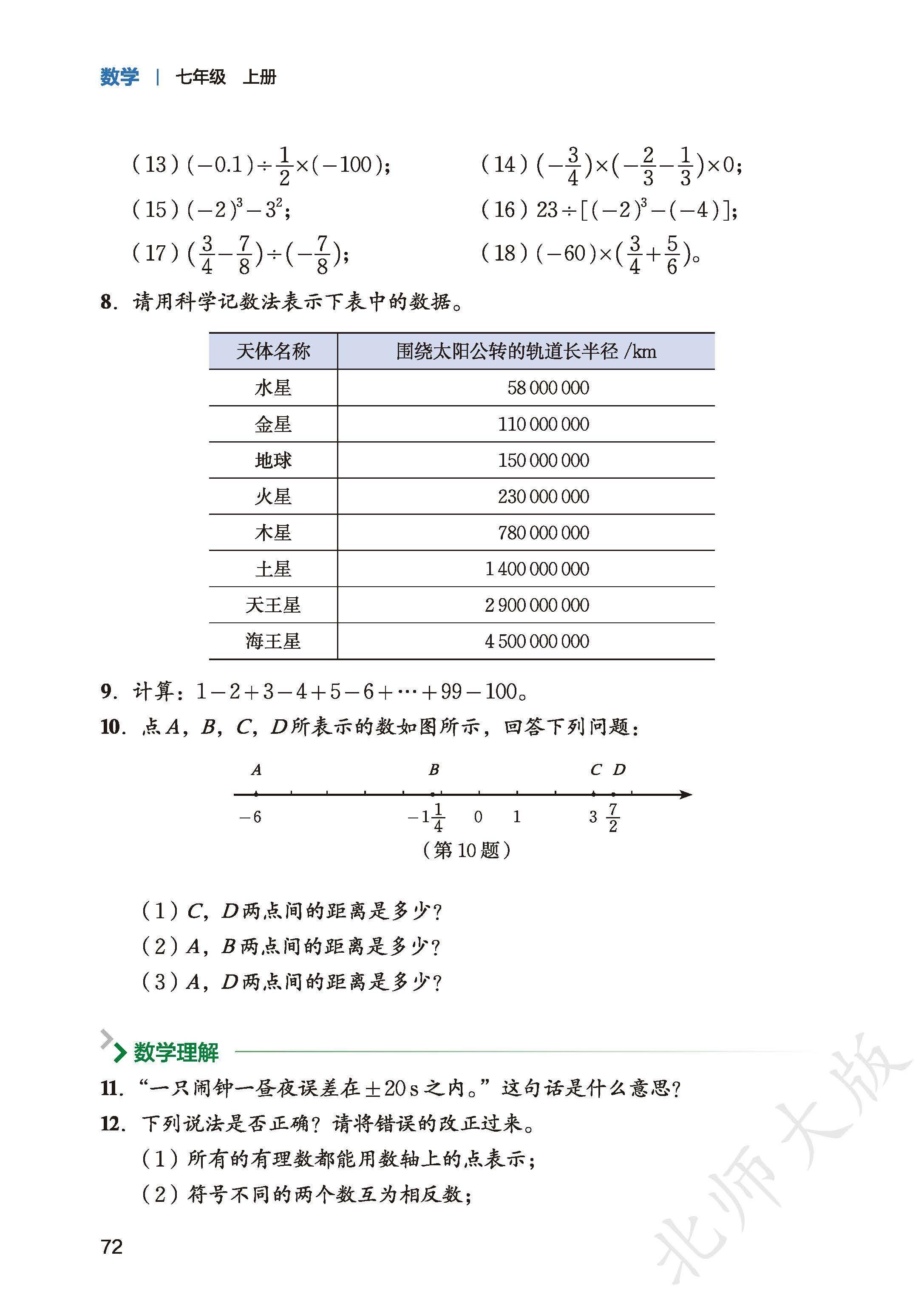 北师大版七年级上册数学电子课本教材-初一上册数学