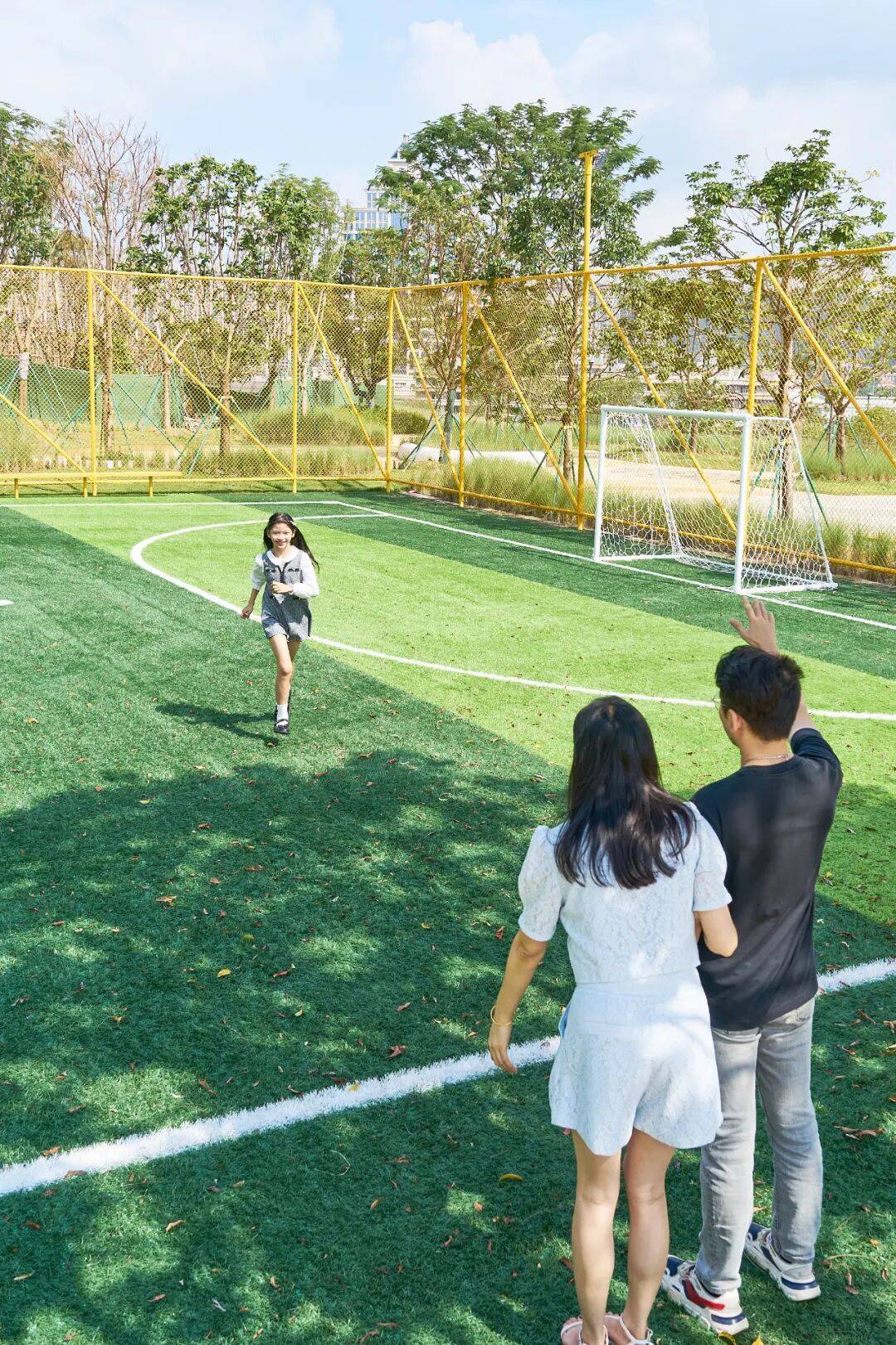 教育在这里融入了日常,家与学校仅一路之隔,心玥走出社区,穿过绿意盎然的公园,即可安全抵达校园,真正实现「目送式上学」。