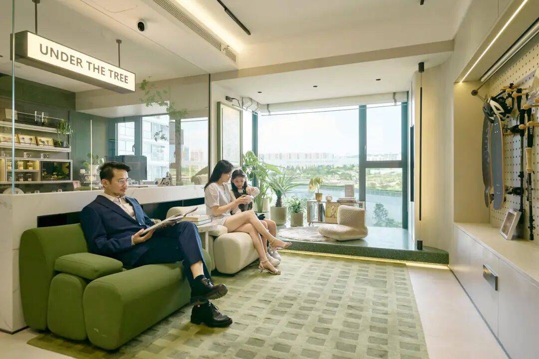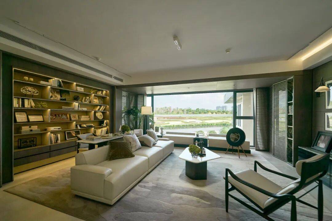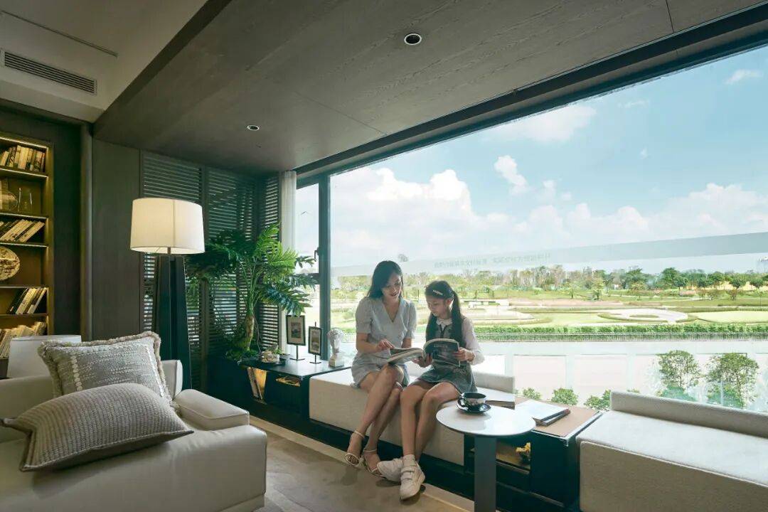 让来访朋友惊叹的是,不仅是宽敞的四房布局,还有这个延伸入室的超长阳台落地窗,它将整个海贝公园的四季画卷,毫无保留地框成了家的主景。