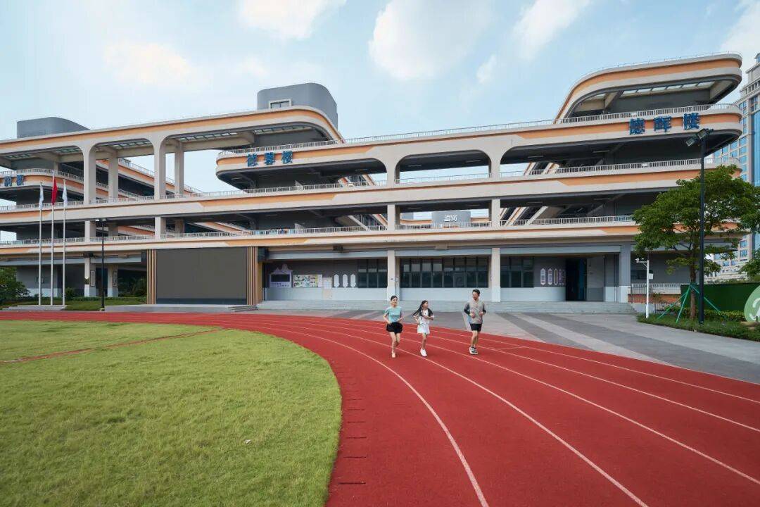 广外新塘实验学校作为广外教育集团在增城的第一所公办学校,通过对口公园上城的社区,保证了生源的纯粹与教育环境的稳定。