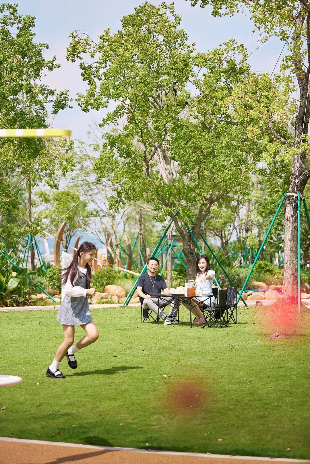 到了周末,是心玥最喜欢的「自然课堂」。在这里,拎起帐篷和风筝,下楼就能来一场自在的露营,还可以观察植物、写生,或者在草地上奔跑。