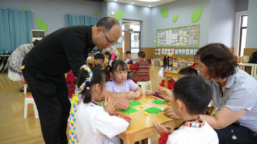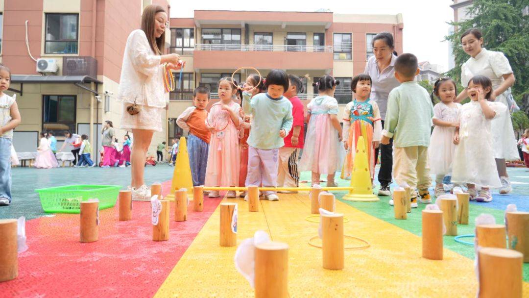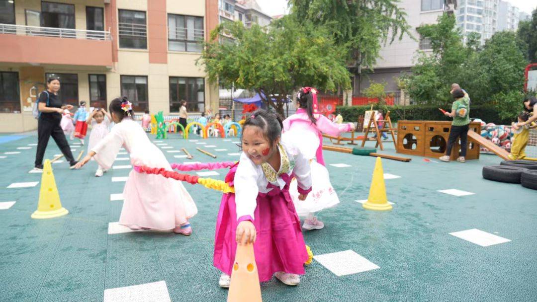 活动中,幼儿园按托、小、中、大班幼儿年龄特点,划分“国庆爱国”“中秋传统”“互动体验”三类游戏区,11个特色游戏同步开展。每个游戏区均有教师和家长志愿者专人看护,确保孩子们的安全与游戏体验。