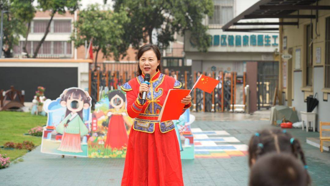 活动中,南京市建邺区南苑幼儿园书记、园长李冬军登台致辞。她向孩子们送上双节祝福,鼓励大家在活动中感受节日文化,做热爱祖国、传承中华优秀传统文化的中国好娃娃。