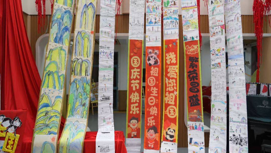当天上午,南苑幼儿园内充满着热闹喜悦的氛围。一大早,孩子们便穿着鲜艳美丽的民族服饰,在园门口的“民族娃娃”合影框前定格笑脸,并在心愿签上认真写下对祖国的祝福。园内还精心布置了双节主题的画展。不少孩子用手中的画笔描绘出心中的祖国,每一幅作品都是孩子们对祖国最纯真的告白,也传递出孩子们要做勇敢、助人、感恩的中国娃的心声。