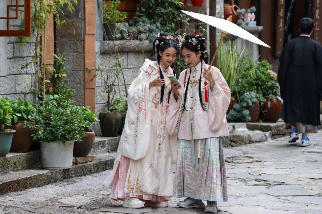 游客穿着汉服在云山屯游览。(图/IC photo)