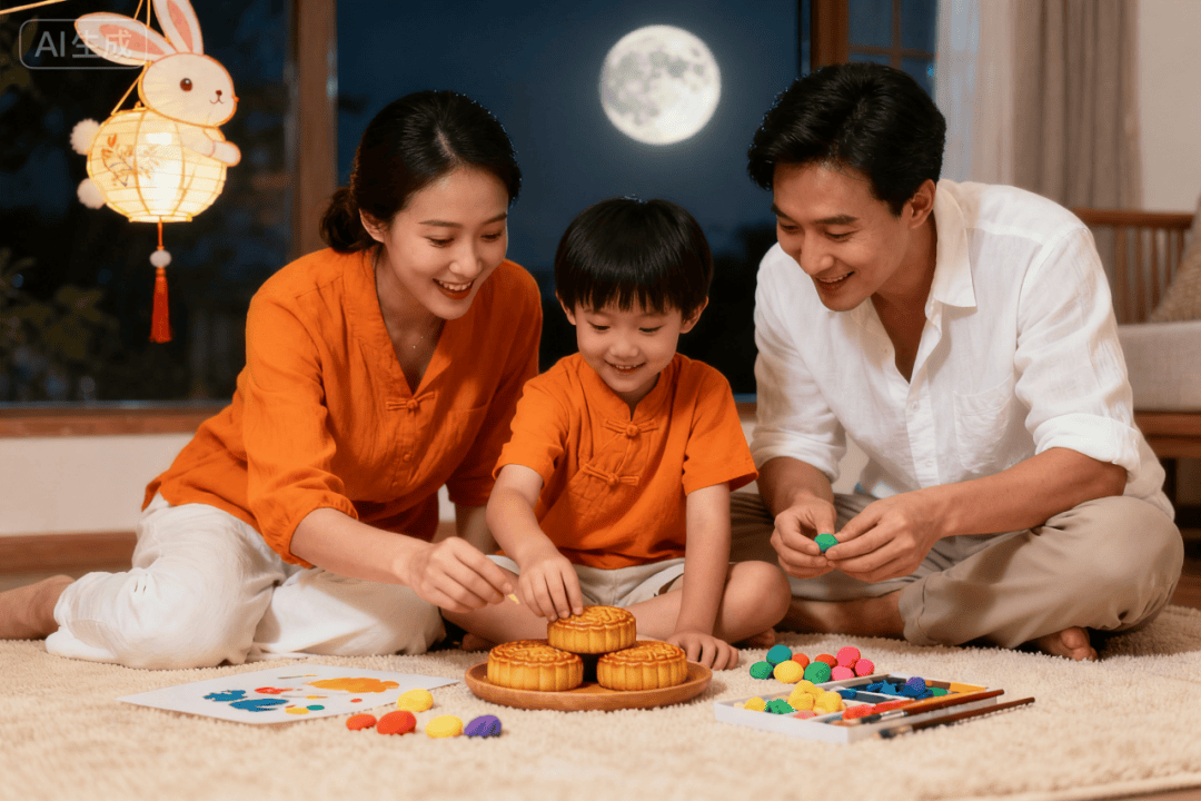 早晨可以和孩子一起亲手制作月饼(哪怕是简单的冰皮月饼),或者一起画一盏兔子灯笼,聊聊中秋节的传说(嫦娥奔月、玉兔捣药)。