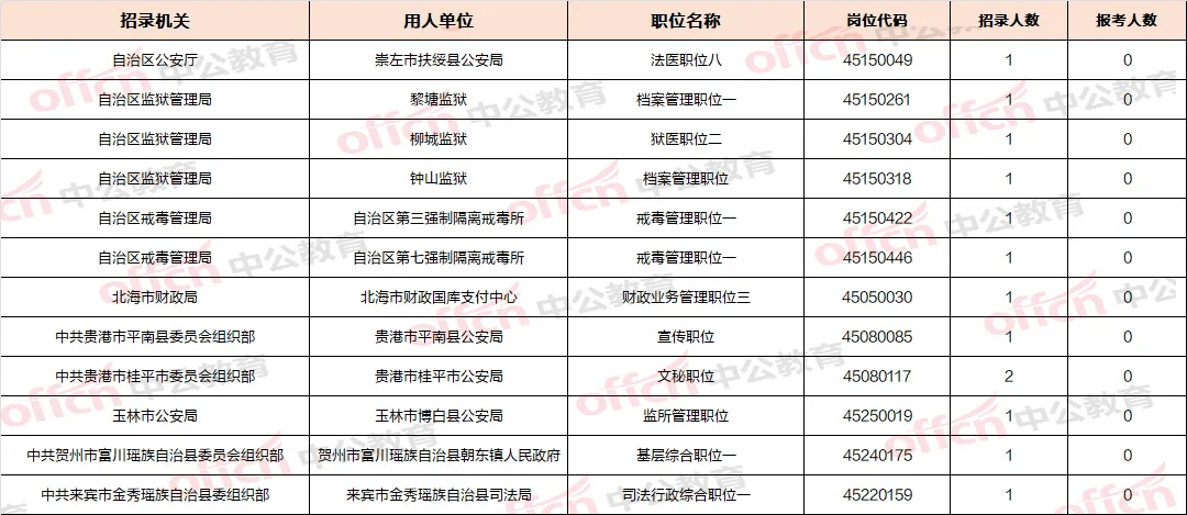 截止2025年广西公务员考试报名最后1天,有12个无人报考岗位,以下是具体岗位一览: