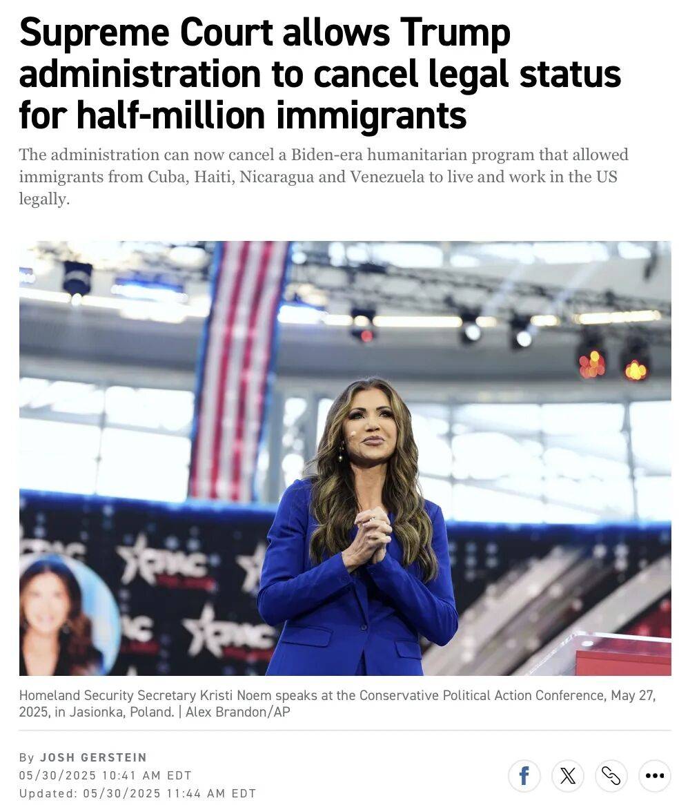 此举终结了拜登政府时期以“人道主义”名义为这些移民提供的临时保护身份(Temporary Protected Status,TPS)。