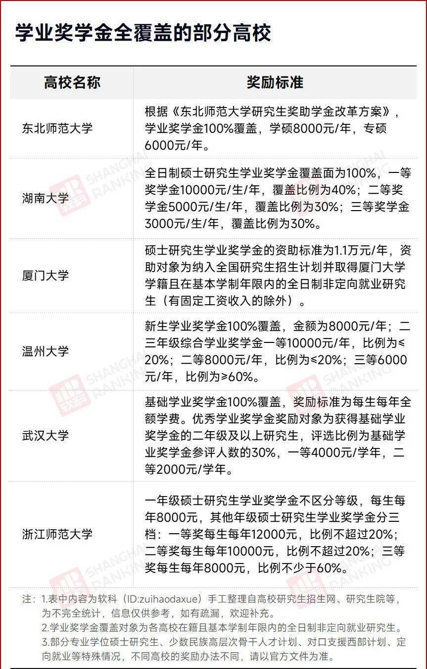 与此同时,已经有不少学校针对在籍的全日制硕士研究生实现了“学业奖学金全覆盖”,为研究生的读研生活提供了一定的基本生活保障。