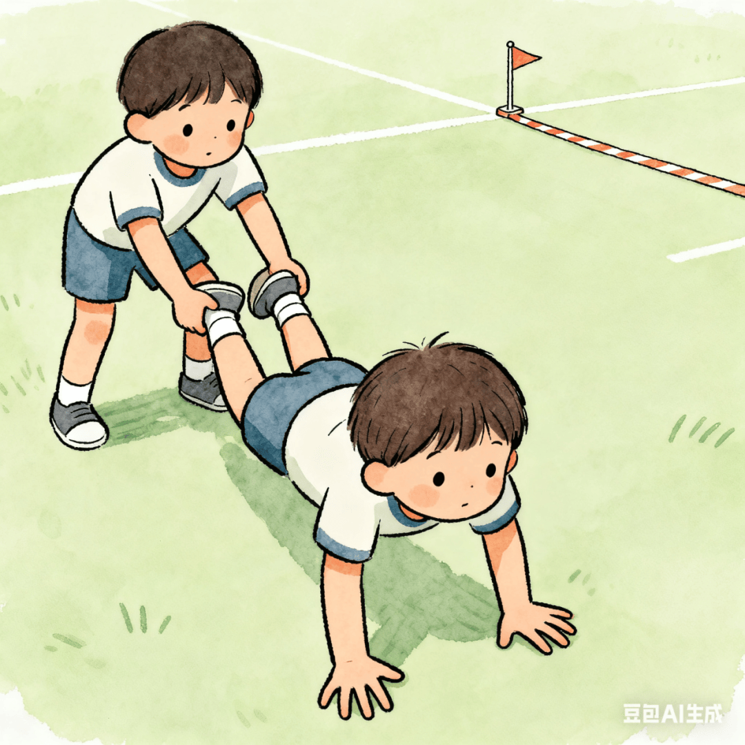 游戏规则:两名幼儿一组,一名幼儿双手撑地,另一名幼儿抓住其脚踝,组成“小推车”。 “推车”的幼儿向前推,撑地的幼儿用手交替前行。到达终点后交换角色返回。