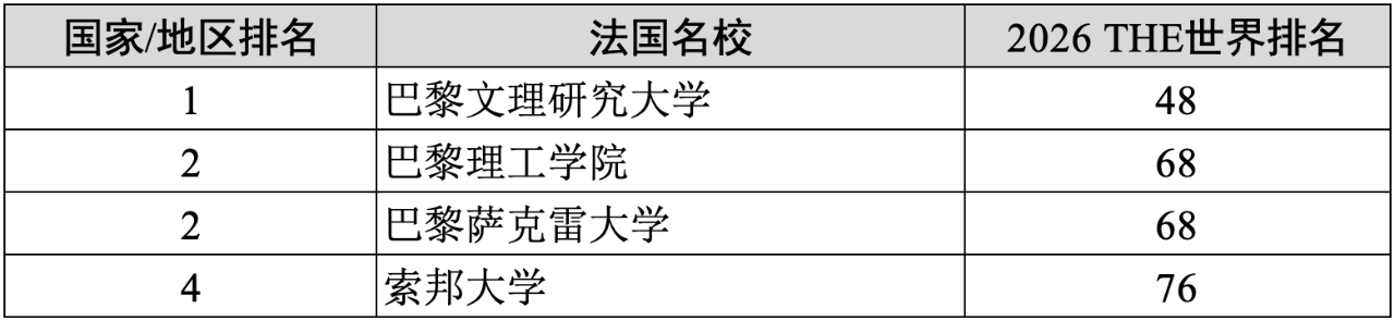 3)法国(4所):巴黎文理研究大学(48)、巴黎理工学院(68)、巴黎萨克雷大学(68)、索邦大学(76)。