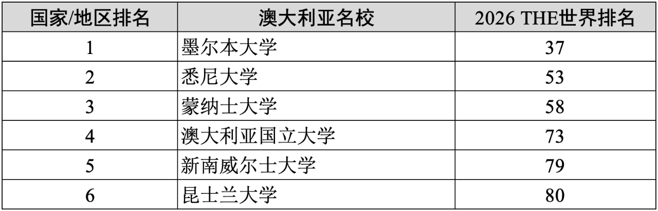 6所澳大利亚名校进入全球前100,它们分别是: