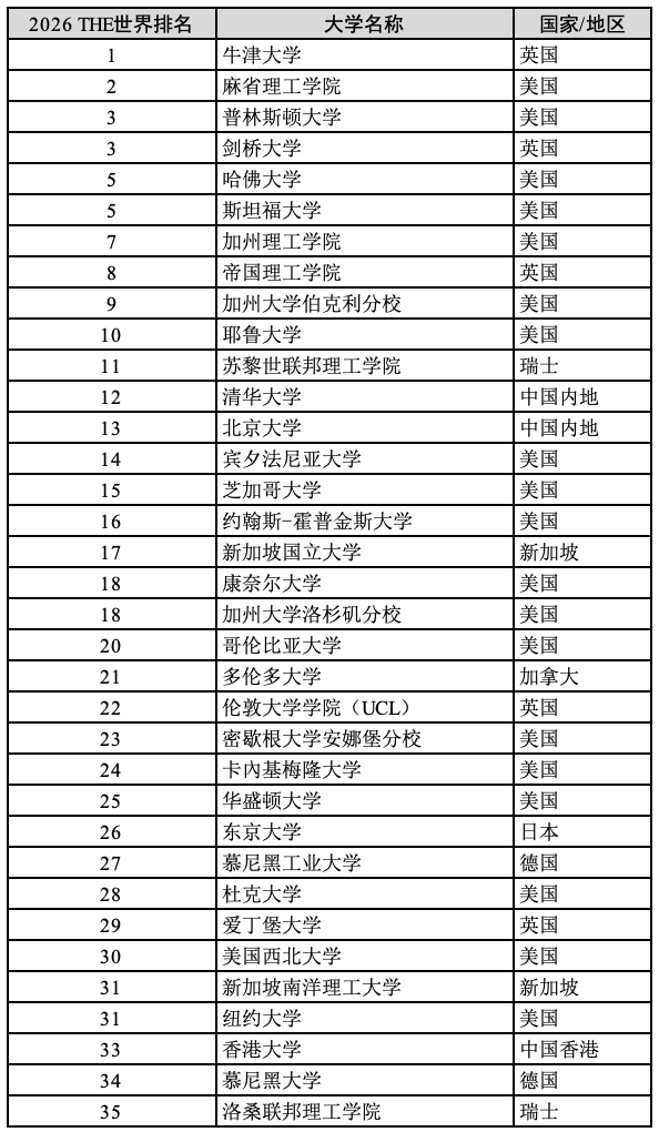 北京时间2025年10月9日,2026年度泰晤士高等教育(THE)世界大学排名官宣,牛津大学排名全球第一,清华、北大逼近全球前10。