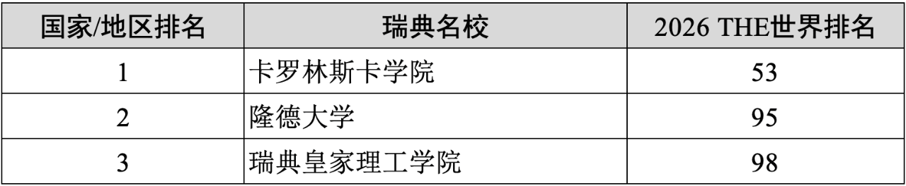 5)瑞典(3所):卡罗林斯卡学院(53)、隆德大学(95)、瑞典皇家理工学院(98)。