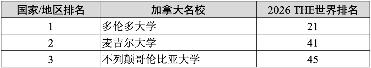 多伦多大学(21)、麦吉尔大学(41)、不列颠哥伦比亚大学(UBC)(45)。