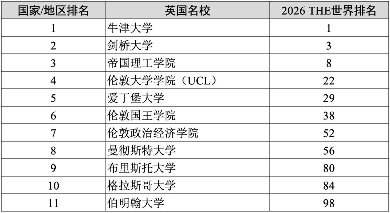 根据2026年度泰晤士高等教育世界大学排名,英国牛津大学连续十年蝉联全球榜首,英美名校垄断全球前10名。