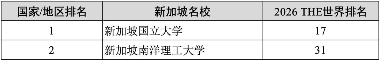 7)新加坡(2所):新加坡国立大学(17)、新加坡南洋理工大学(31)。