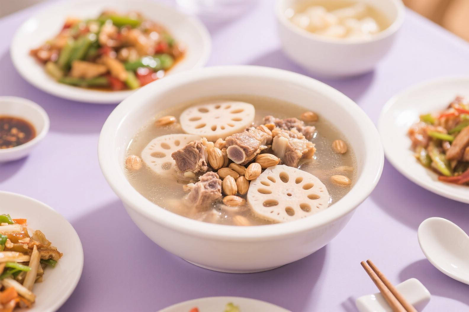 然后跟莲藕、花生、红枣和姜片一起炖煮一个半小时,最后加盐调味即可。
