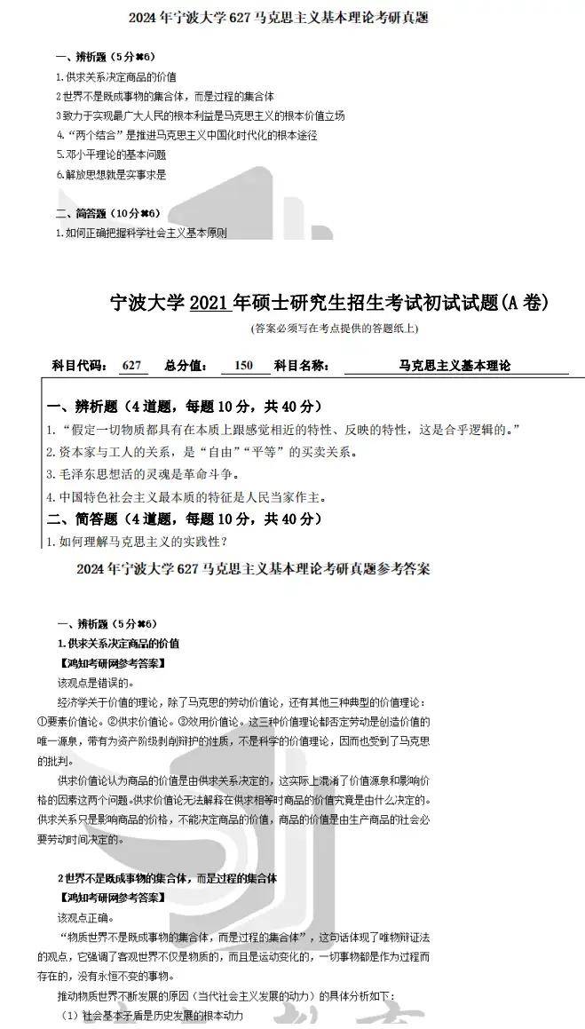 2021-2025年宁波大学627马克思主义基本理论考研真题参考答案