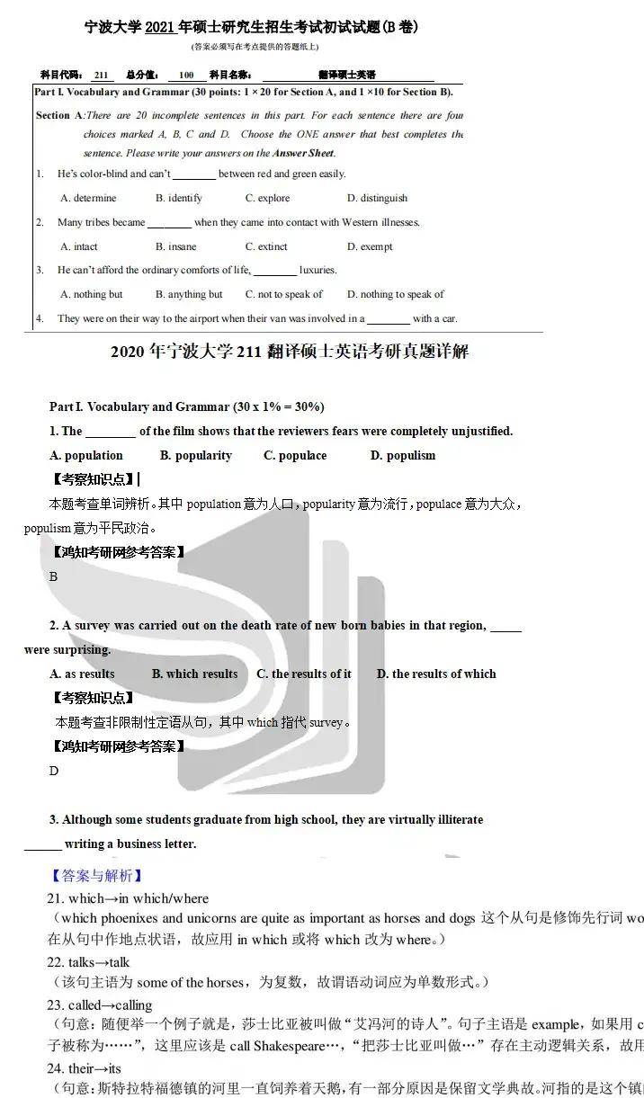 2011-2021年宁波大学211翻译硕士英语考研真题参考答案