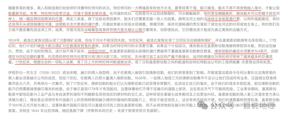 质疑:18世纪末(比斯顿运河是18世纪末修建的),特伦特河经过比斯特运河运输的主要货物是“煤、铁、农具五金”吗?这里是农具、五金生产中心吗?
