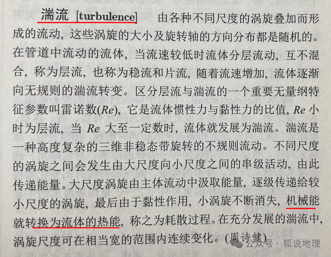 “南部特伦特河局部河段多湍流”,这个“湍流”在《地学大辞典》中是指大气科学的词条。