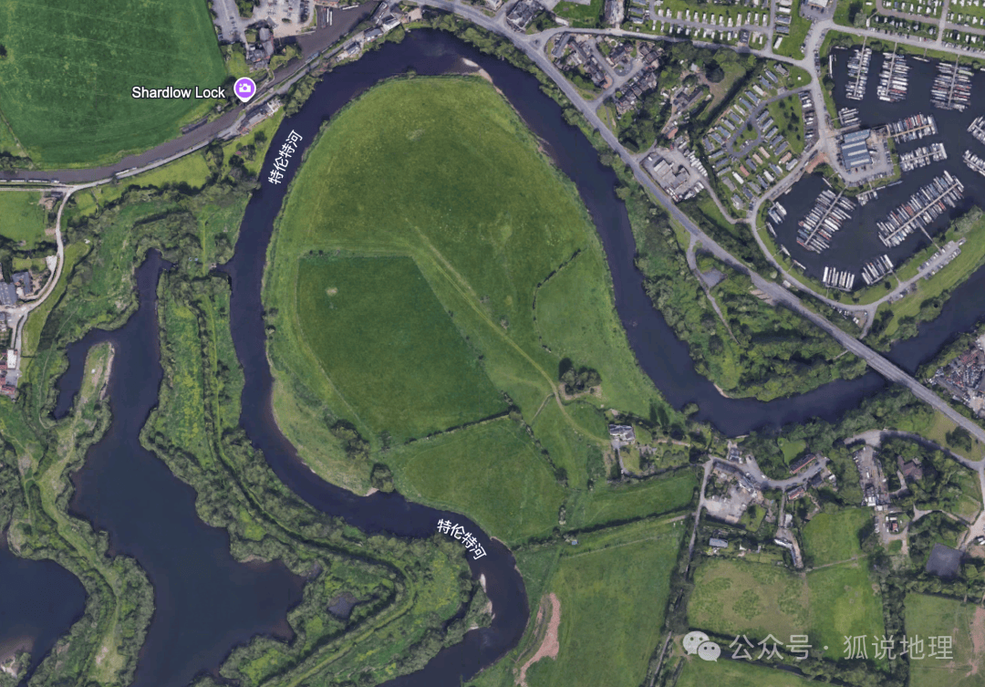 这条河道在历史时期发生了显著变化,在这方面被描述为与密西西比河相似,特别是在中游,那里有许多古老的曲流和截止环。一张旧地图上将雷普顿的一条废弃河道描述为“旧特伦特水道”,记录显示这曾经是主要的通航路线,河流在 18 世纪改为更北的航道。