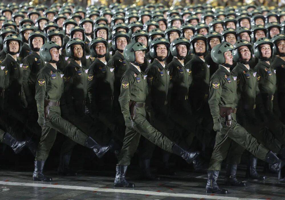 报道说,各历史时期的象征方队、名誉骑兵方队等亲卫部队方队首先通过金日成广场;南部边境前线军团方队、一线野战武力阅兵方队、海军方队和空军方队紧随其后;战略军方队、特种作战军方队和海外作战部队方队等众多方队接受检阅。