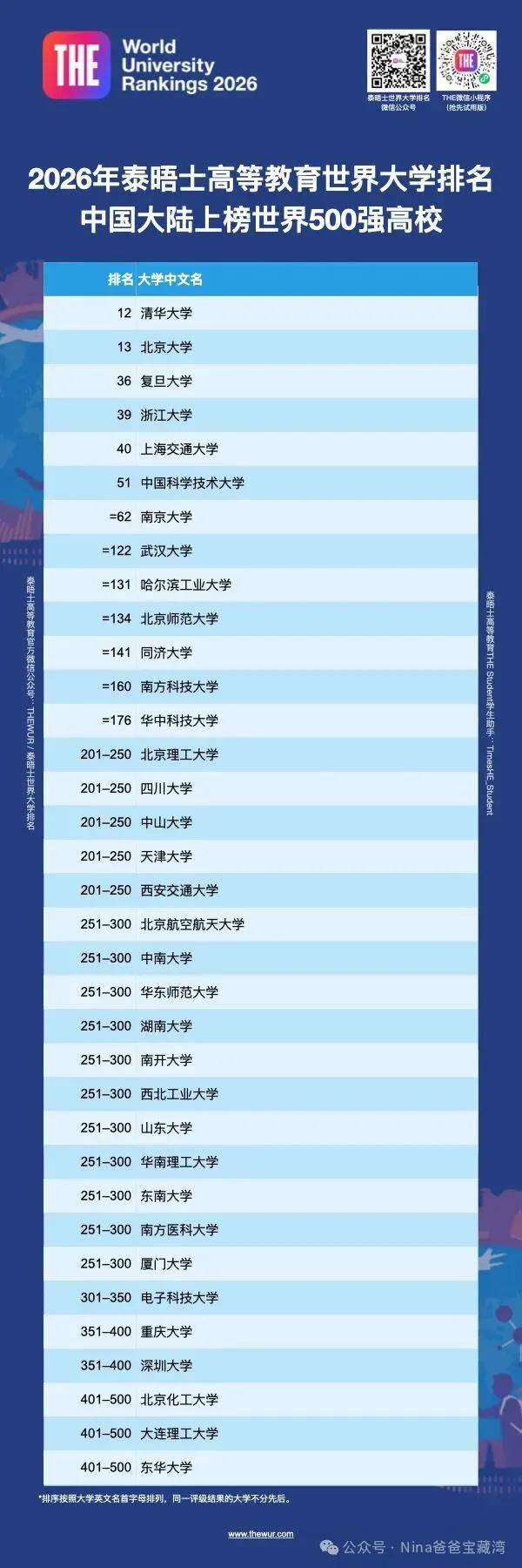 就在昨天10月9日,泰晤士高等教育(THE)发布了2026年世界大学排名的结果。2026年泰晤士高等教育世界大学排名涵盖115个国家/地区,共有2,191所高校上榜,再创历史新高。