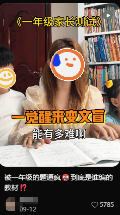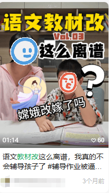 网上搜“教材改版”,能看到很多自媒体博主发的辅导娃娃写作业的视频,大部分是吐槽语文,说自己学了那么多年变“文盲”了。