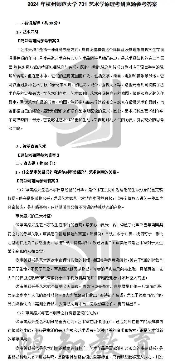 2024 年杭州师范大学 731 艺术学原理考研真题参考答案