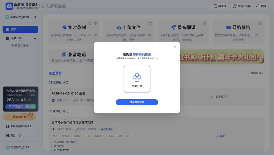 5. 多平台同步超方便:网页版适合在公司用(开电脑面),APP适合外出用(手机面),云端存储不用担心文件丢了,我上周在公司用网页版录了2个面试,回家用APP接着整理,完全同步。