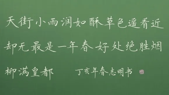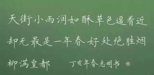 粉笔字写的好且“自成一体”并非易事,但肯下苦功,以正确的方法用心练习未必办不到。可是,每个人写字都有自己的习惯,所写字也各有面貌。这种面貌在不同的时期,不同的层次上都有相应的水平体现。