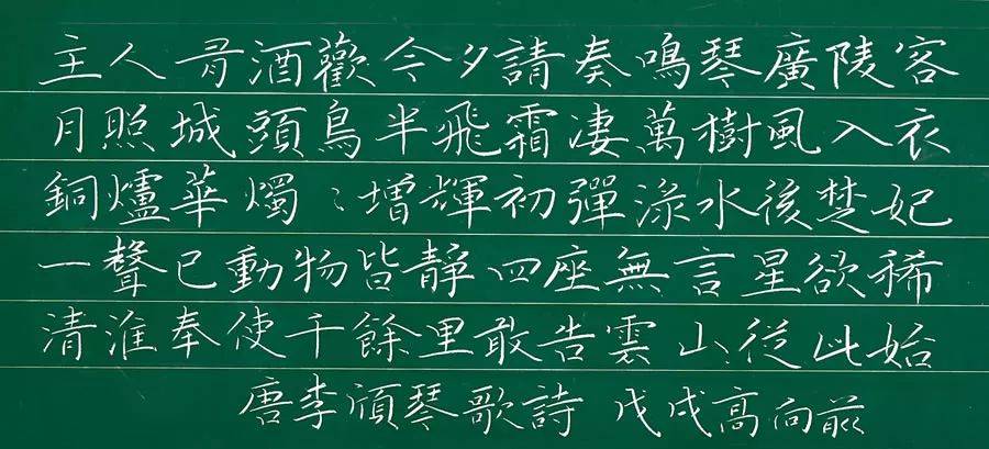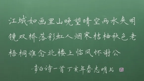 粉笔字的起笔一般要求“欲横先竖,欲竖先横”,有“藏笔”(按笔)之势;行笔要稳健,用力要均匀,使线条有力、流畅。