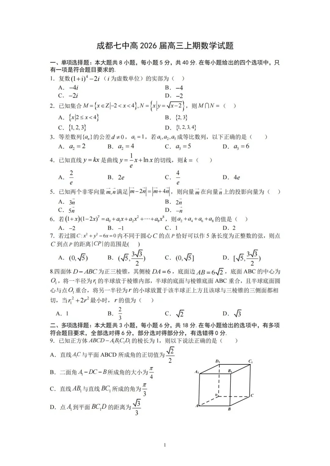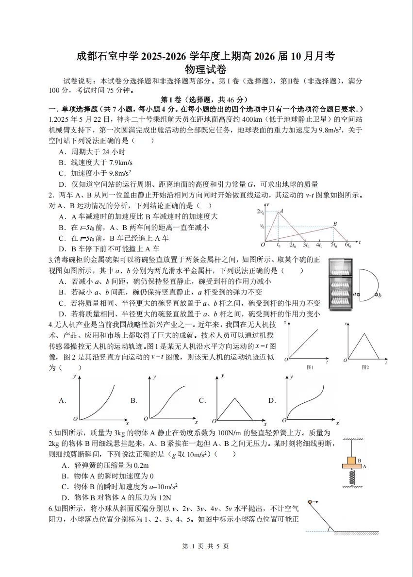 近期,成都不少高中已经完成了开学以来的第一次月考,小编收集整理了成都七中、石室中学、成外树德中学等高中的最新月考试卷。下面一起来看,有需要的家长朋友可以收藏起来!