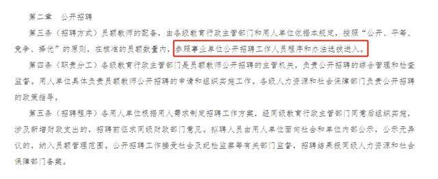 另外,合同制教师无法晋升,无法调动,但是员额教师被纳入中小学职称序列评审范围,还有转编机会。以某省会城市为例,根据当地规定,员额管理满三年的教师,有机会被聘用为在编教师。所以很多人也将员额制称为“准编制”。