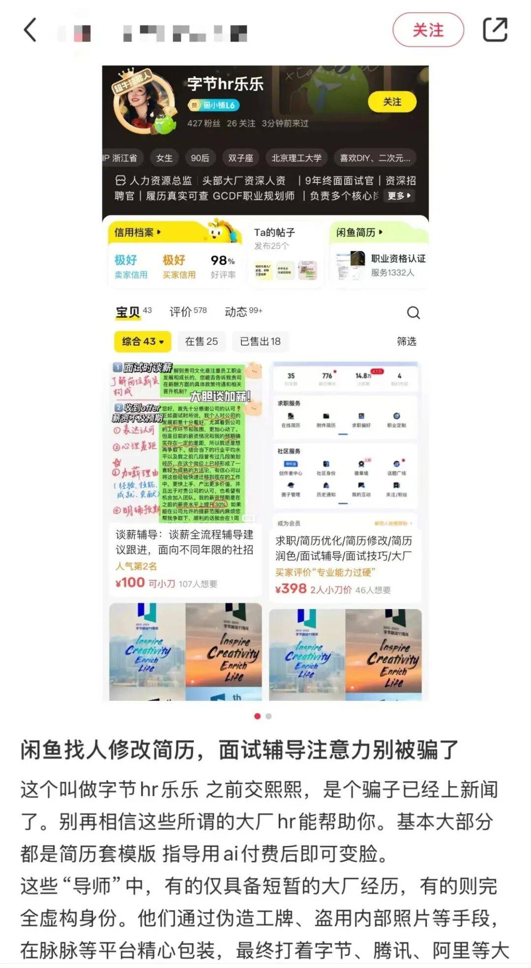 然而,这些身份标签均系伪造。所谓的“字节资深HR”身份实为假冒,其宣传内容与事实严重不符。