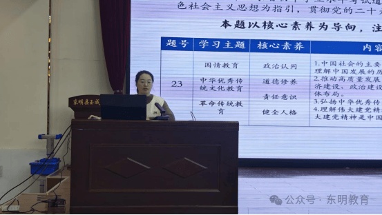 三春镇初级中学常晓颖老师针对2025中考试题进行细致分析。她以详实的数据和典型的例题,深度剖析了中考试题的命题特点、素养立意、考察方向和评价标准,为初三复习备考提供了精准的战略指导和教学建议。