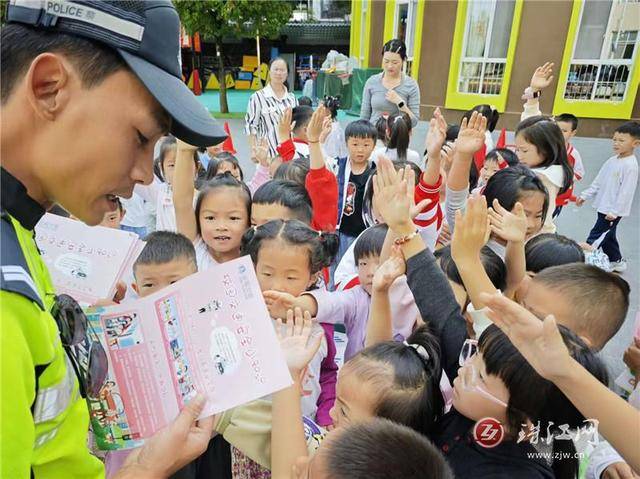 活动尾声的“问答有礼”环节,更是点燃了全场的热情。交警随机抽取小朋友进行“看图识交通”,连续答对问题的孩子惊喜地获得了可爱的“交警小熊”以及作业本、铅笔等宣传品。一份份宣传资料也被交到孩子们手中,成为连接校园与家庭的交通安全纽带。