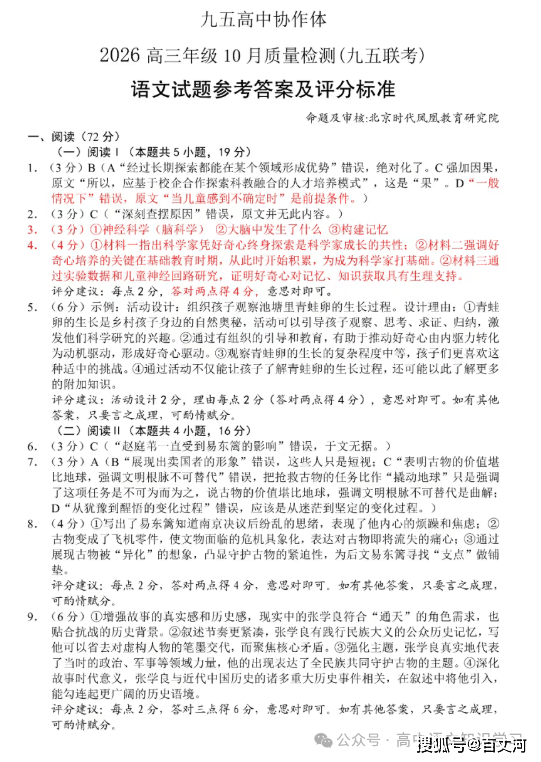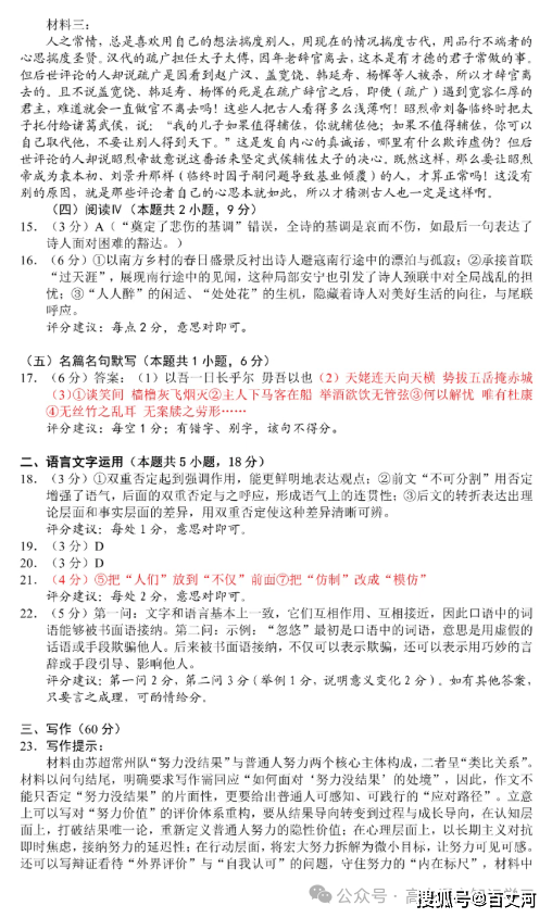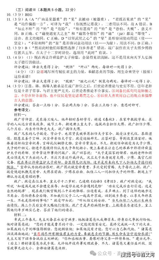 10.材料中画波浪线的部分有三处需加句读,请用铅笔将答题卡相应位置的答案标号涂黑,每涂对一处给1分,涂黑超过三处不给分。(3分)