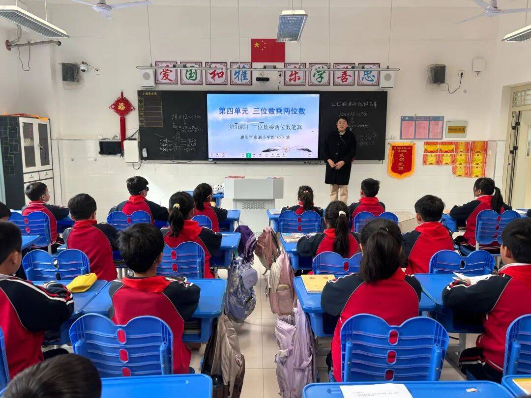 张素花老师执教的《三位数乘两位数笔算》,巧妙引导学生利用已有两位数乘两位数的知识进行迁移,轻松突破算理理解难点。课堂中,其注重培养学生的运算能力与推理意识,通过清晰的步骤讲解和扎实的板书示范,确保学生掌握算法,有效提升了学生的数学核心素养。