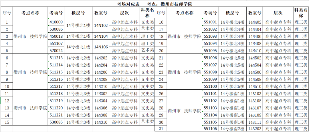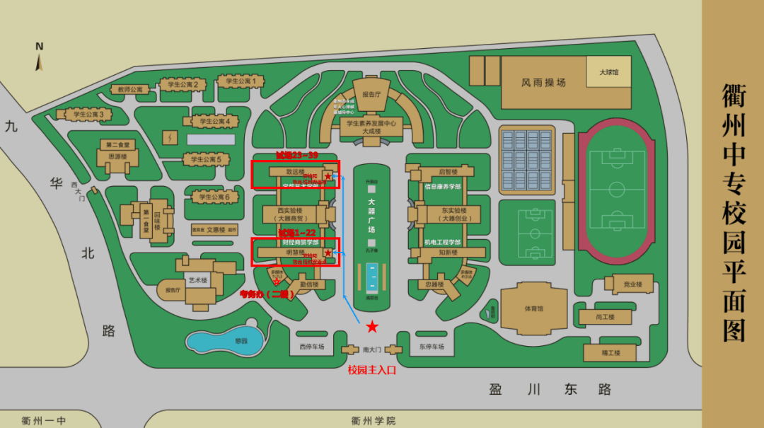 衢州城区成人高考考点设在衢州中等专业学校考点(考生从南门进,衢州市柯城区盈川东路588号)和衢州市技师学院考点(考生从北门进,衢州市柯城区智慧新城钱江大道1号)。