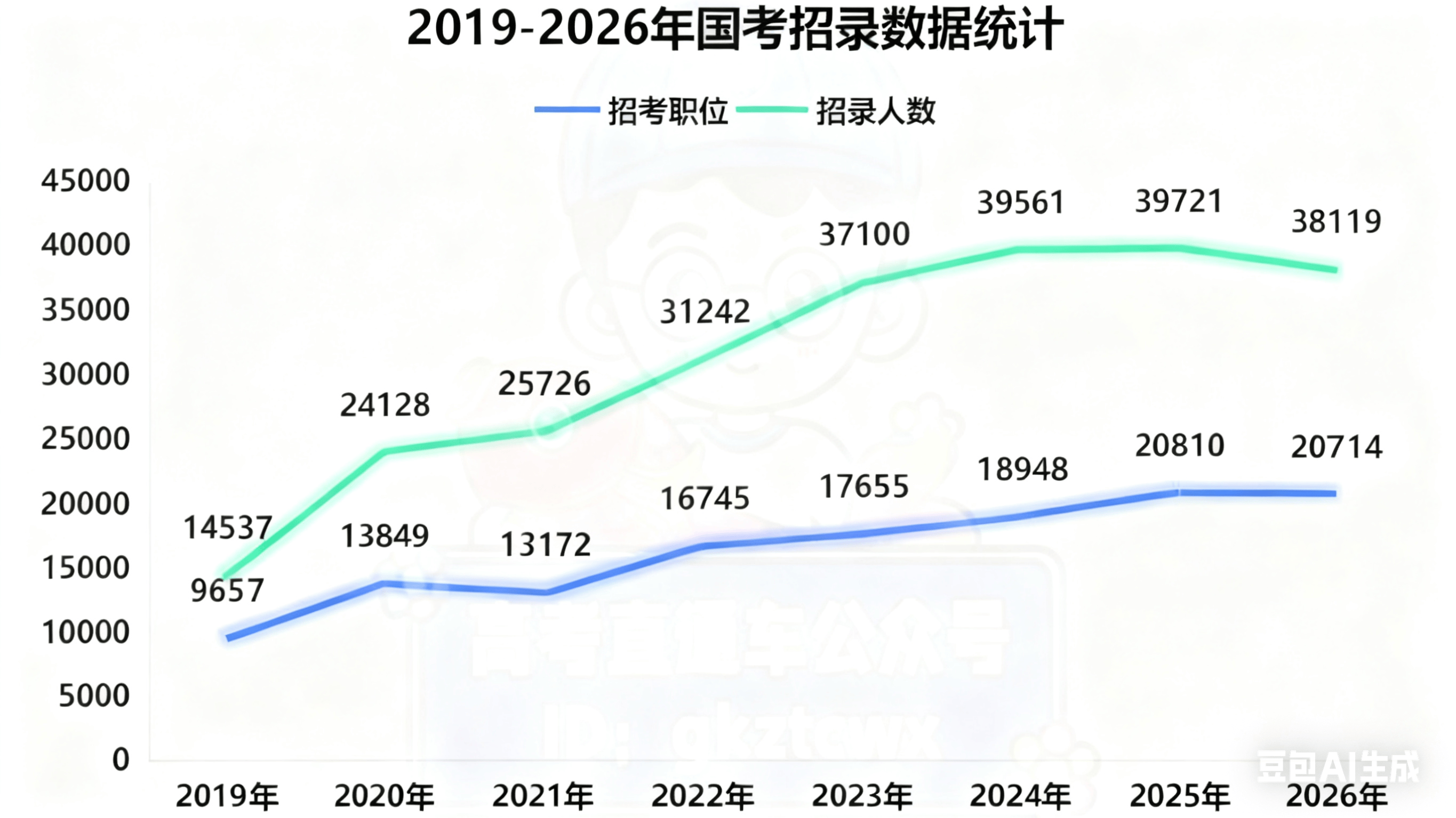 自 2019 年招录 1.45 万人起,国考规模连续 6 年扩张,直到 2025 年达到峰值。2026 年的回调并非偶然 ——税务系统扩招近 2000 人,铁路公安等部门却大幅缩编,体现了 “精准补员” 的思路。