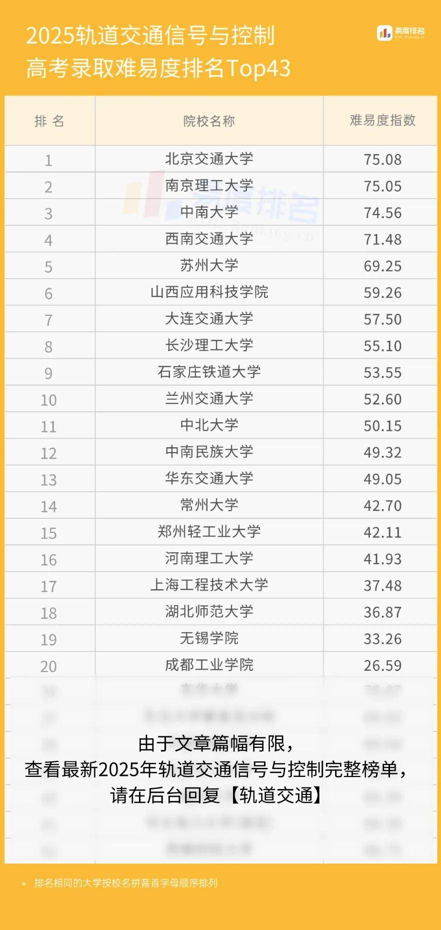 兰州交通大学、大连交通大学等与铁路系统渊源深厚,校招时各路局会蜂拥而至。适合分数在一本线上下至超出40分的理科考生。石家庄铁路职业技术学院、武汉铁路职业技术学院,不要小看这些顶尖专科,它们的专业设置与岗位需求无缝对接,毕业生动手能力强,就业率甚至超过许多本科院校。适合分数在本科线上下,动手能力强的理科考生。