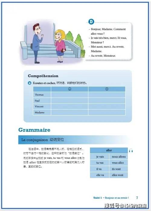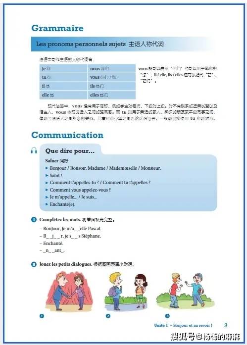 7 年级法语语法聚焦 “一般现在时、名词阴阳性、基础人称代词(je, tu, il/elle)”,核心是 “在句子语境中理解规则”,而非机械背诵表格。