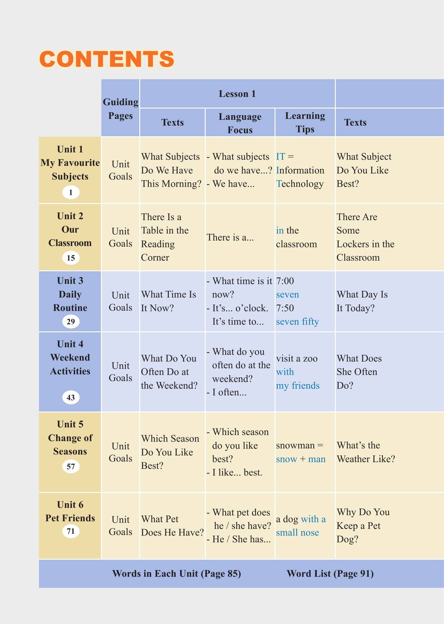 一:2024版重大版小学英语四年级上册电子课本教材目录: